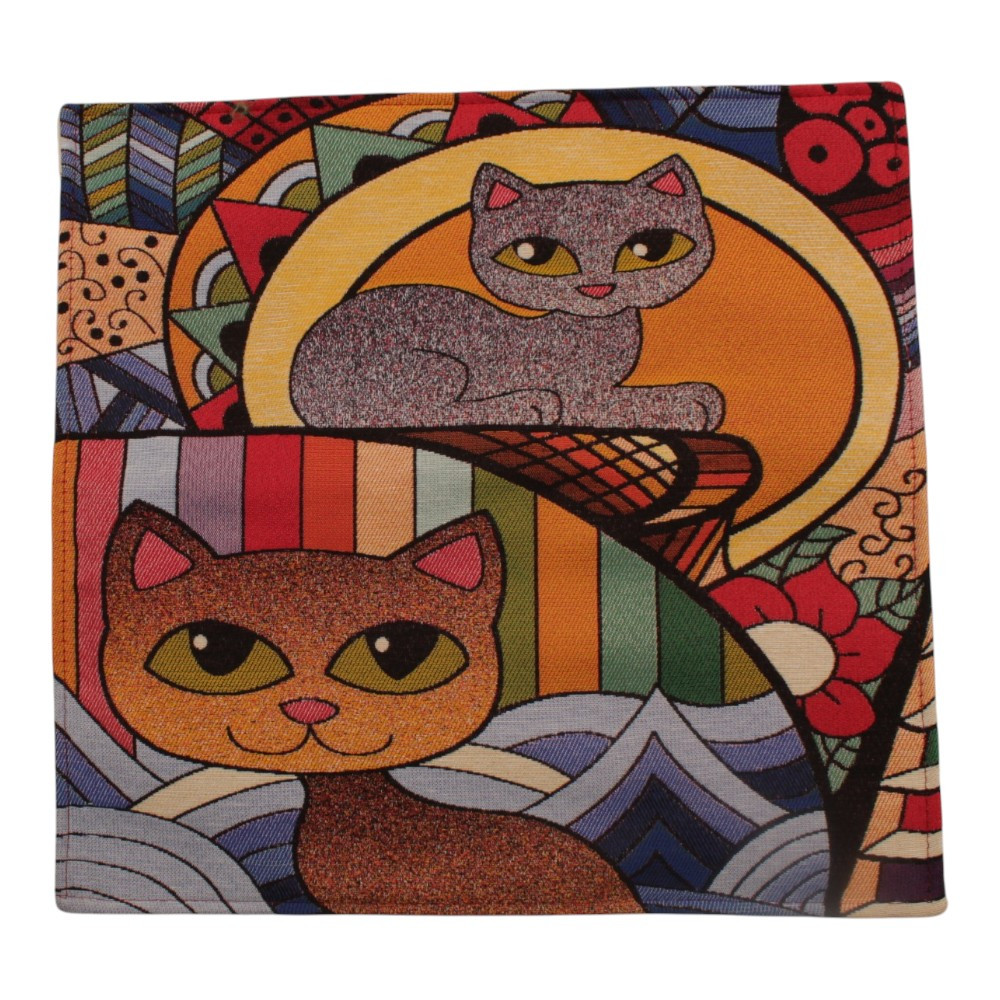 Dekoračný vankúš oranžový 45x45 cm – Mozaikové mačky