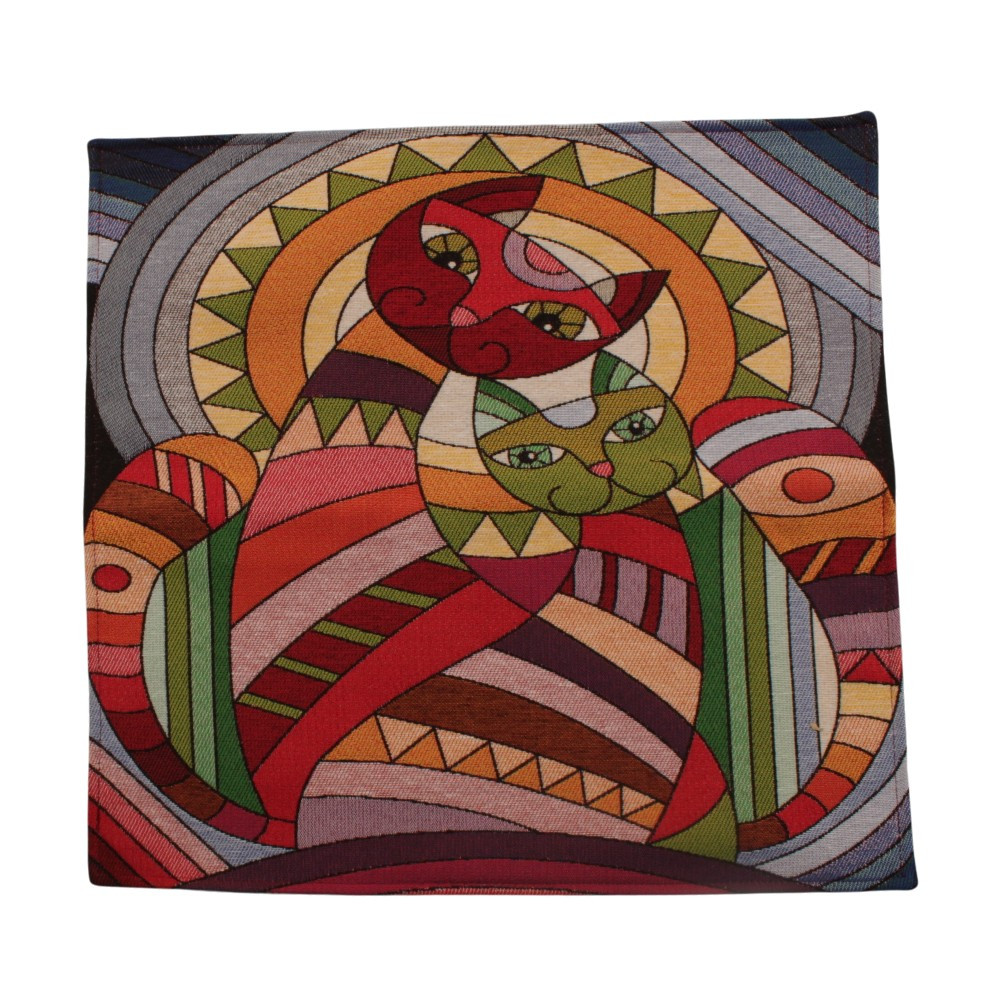 Dekoračný vankúš bordový 45x45 cm – Mozaikový mačací pár